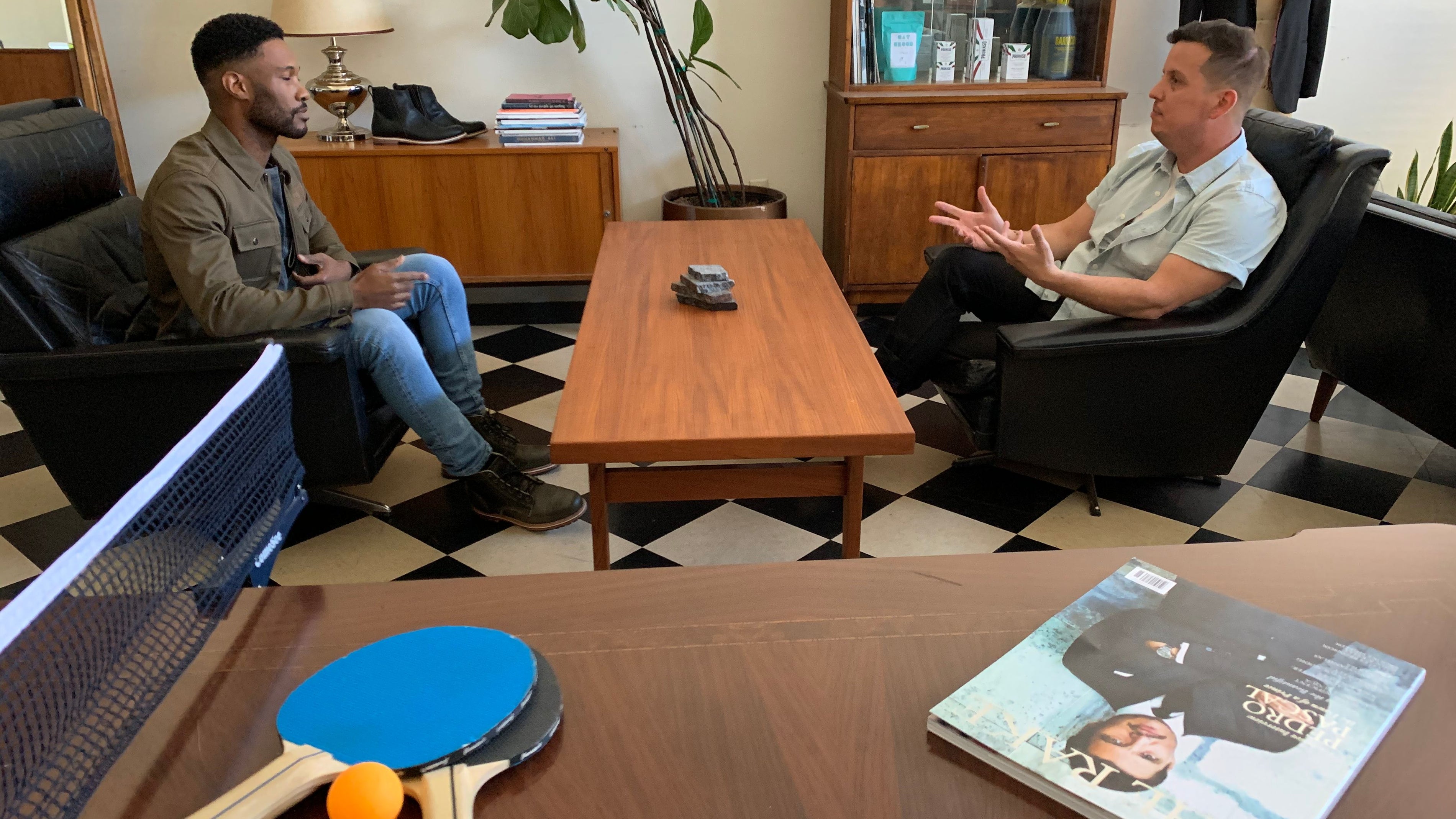 Listen to Woody on his podcast, The Barber and His Therapist. All seven episodes are available online and ready to binge, with a new one out each month.